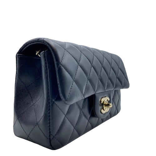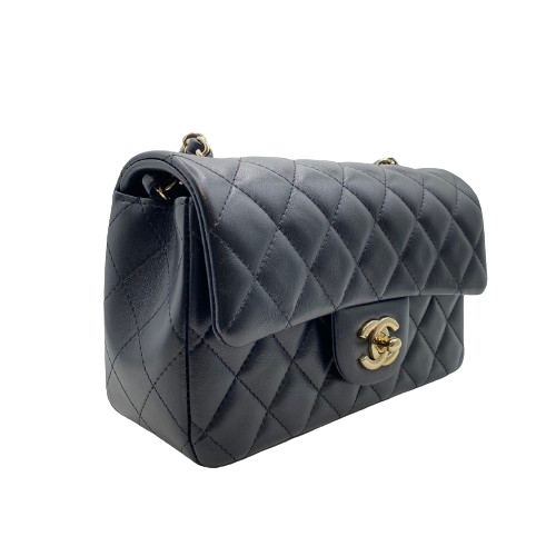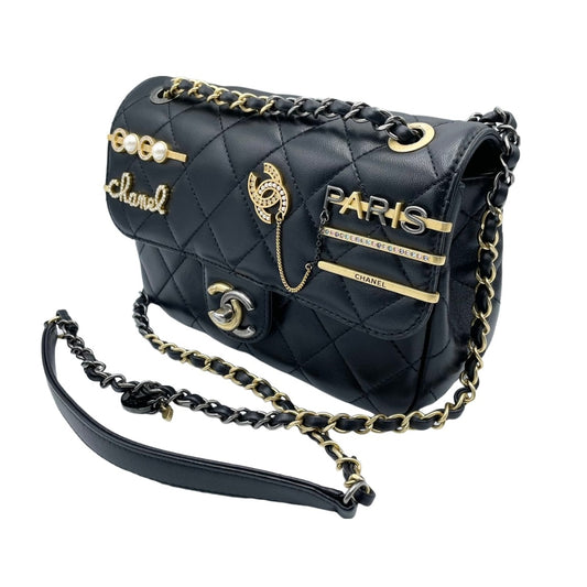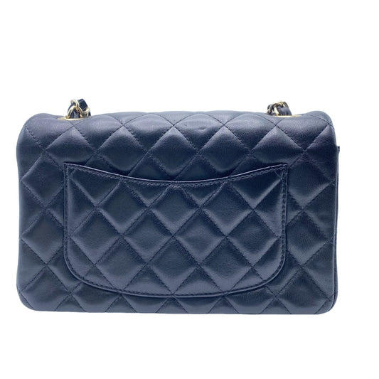 Pre-Owned Chanel Minimatelasse 20 Black Lambskin Gold Metal