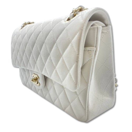 Pre-Owned Chanel Matelasse W25 White Caviar Skin Gold Fittings
