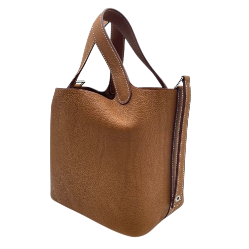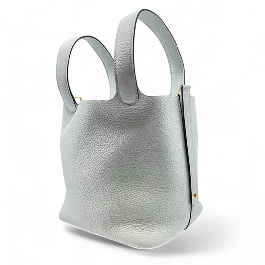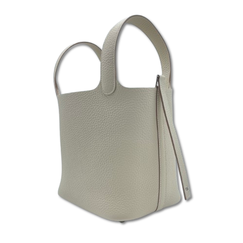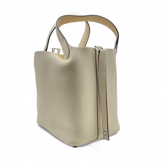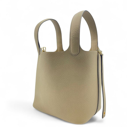 Pre-Owned Hermes Pico Tan Lock MM Etoupe Taurillon Clemence Silver hardware U engraved