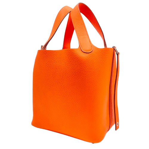 Pre-Owned Hermes Picotin Lock PM Orange Torillon Clemence Silver Fittings B Engraved