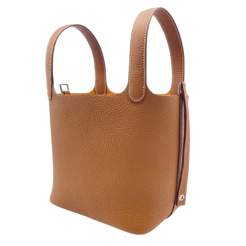 Pre-Owned Hermes Picotin Lock PM Gold Torillon Clemence Silver Metal Fitting K Engraved