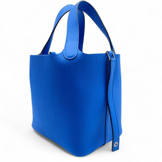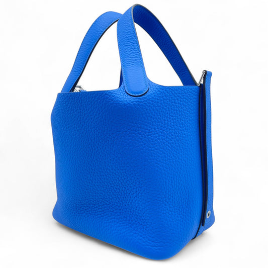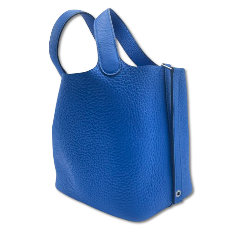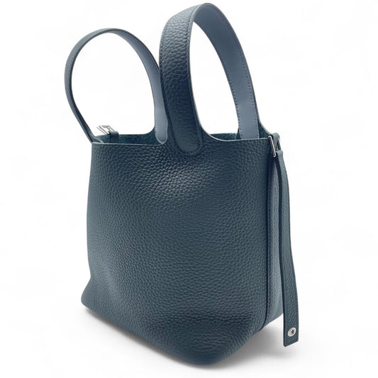 Pre-owned Hermes Picotan Lock PM Blue Hydra Taurillon Clemence Silver hardware W engraved