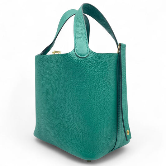 Pre-owned Hermes Picotan Lock PM Vertfonce Taurillon Clemence Gold hardware K stamp