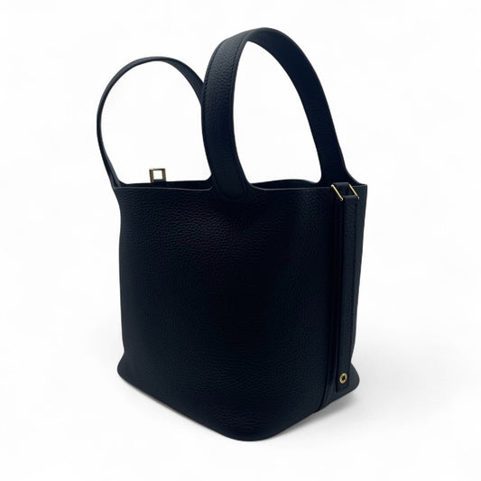 Pre-owned Hermes Picotan Lock MM Noir Taurillon Clemence Gold hardware K stamp