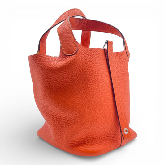 Pre-owned Hermes Picotan Lock PM Orange Taurillon Clemence Gold hardware K stamp