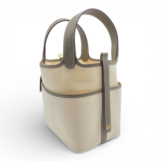 プレオウンドエルメス ピコタンロック カーゴ PM エトゥープ トワルアッシュ/スイフト ゴールド金具 W刻印