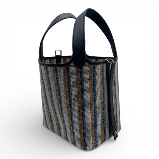 プレオウンドエルメス ピコタンロック クーベルチュール PM ノワール/エクリュ/フォーブ/ブルーザンジバール トワルアッシュ/スイフト シルバー金具 W刻印
