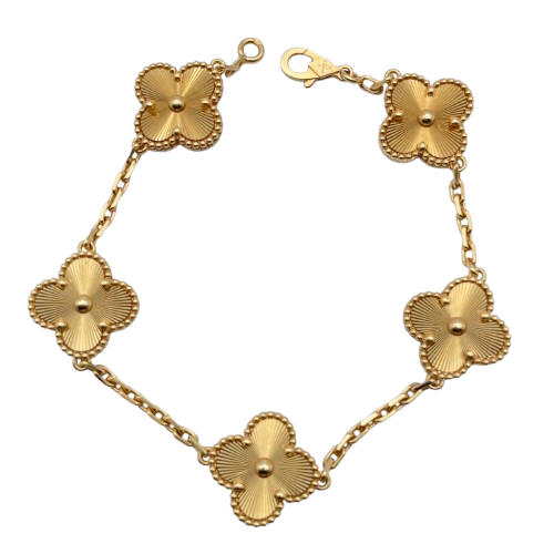 Pre-Owned Van Cleef & Arpels Vintage Alhambra Guilloche 5p Bracelet VCARP3JK00 Yellow Gold
