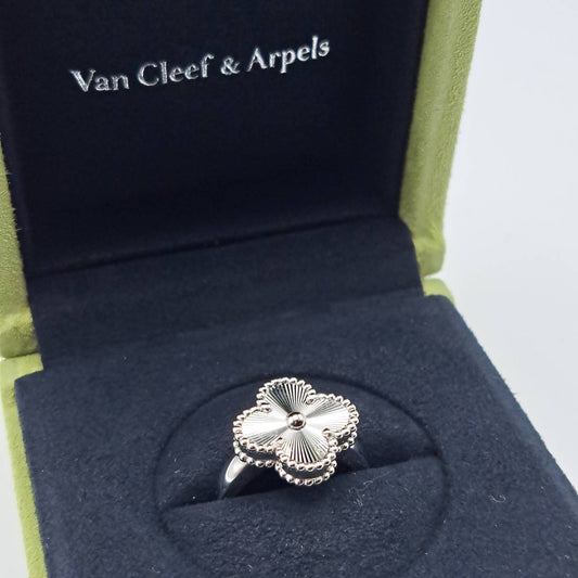 Pre-Owned Van Cleef & Arpels Alhambra Ring VCAR085850 Size 9 Diamond 18K White Gold