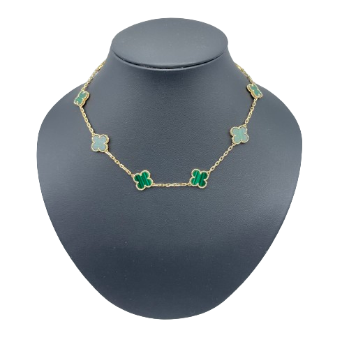 Pre-Owned Van Cleef & Arpels Vintage Alhambra Necklace 10 Motif 42cm Malachite 18K Yellow Gold