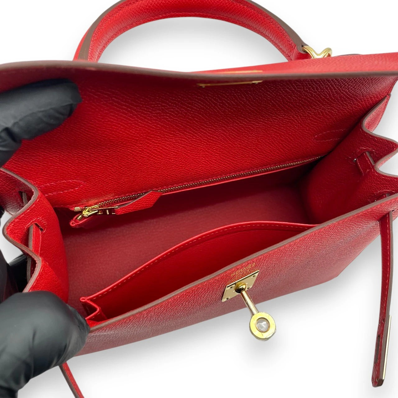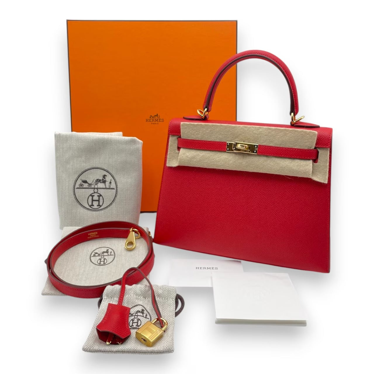 エルメスのケリー 25は、端正なスクエアシルエットと凛とした金具使いが魅力の永遠のアイコンバッグです。鮮やかで深みのあるルージュラデュー(レッド/赤系)は、印象を華やかにしつつ、フォーマルからデイリーまで幅広くお使いいただける上品なレッド。エプソンならではのハリと傷のつきにくさで、長く美しい状態を保ちやすいのもポイントです。タイムレスに愛される横幅25cmのサイズは、日本人女性の体型にもバランス良く収まり、装いをぐっと格上げしてくれる一品です。