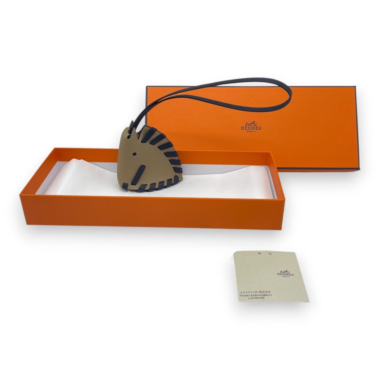 エルメスならではの遊び心とエレガンスを凝縮したチャーム オトロット「シュヴァル・トレッセ」。プシエールの優しいニュアンスカラーに、ノワールのコントラストがキリッと映える配色は、甘さとモード感を絶妙なバランスで両立させてくれます。バッグのハンドルに添えるだけで、定番バッグも一気に今年らしい印象に。コーディネートに上質な“抜け感”をプラスしたい方に、ぜひおすすめしたい一点です。