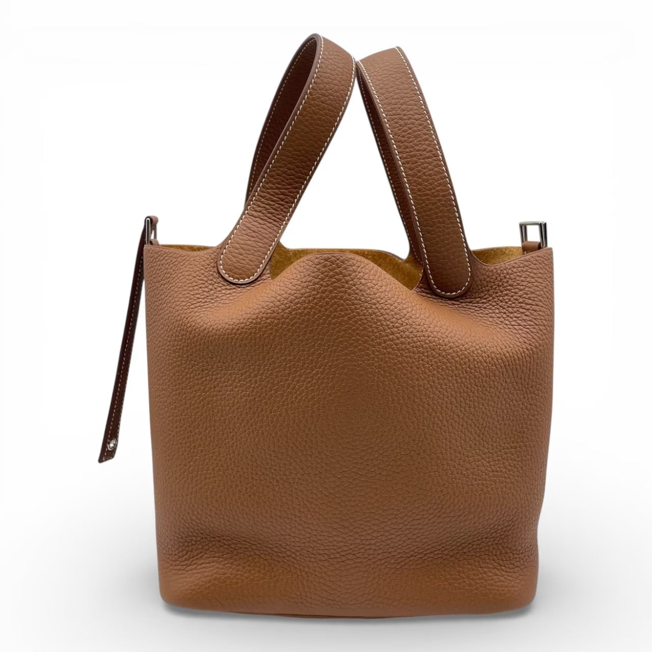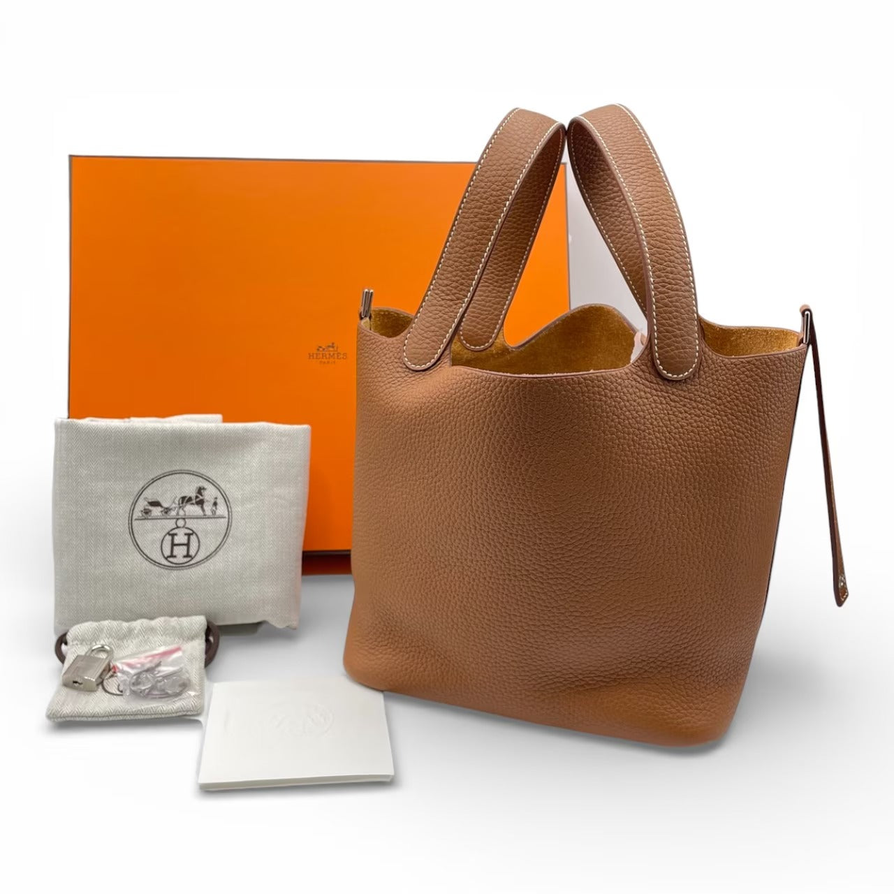 エルメスの中でも高い人気を誇るピコタンロック。しなやかで上質なトリヨンクレマンスに、エルメスを象徴する「ゴールド」カラーをまとった、ワンランク上の名品です。デイリー使いしやすいサイズ感ながら、気品漂う佇まいで装い全体を格上げ。カジュアルからきれいめまで幅広いスタイルに溶け込み、長く愛用いただけるアイテムです。新品未使用品のため、ご自身へのご褒美はもちろん、大切な方へのギフトにも最適です。