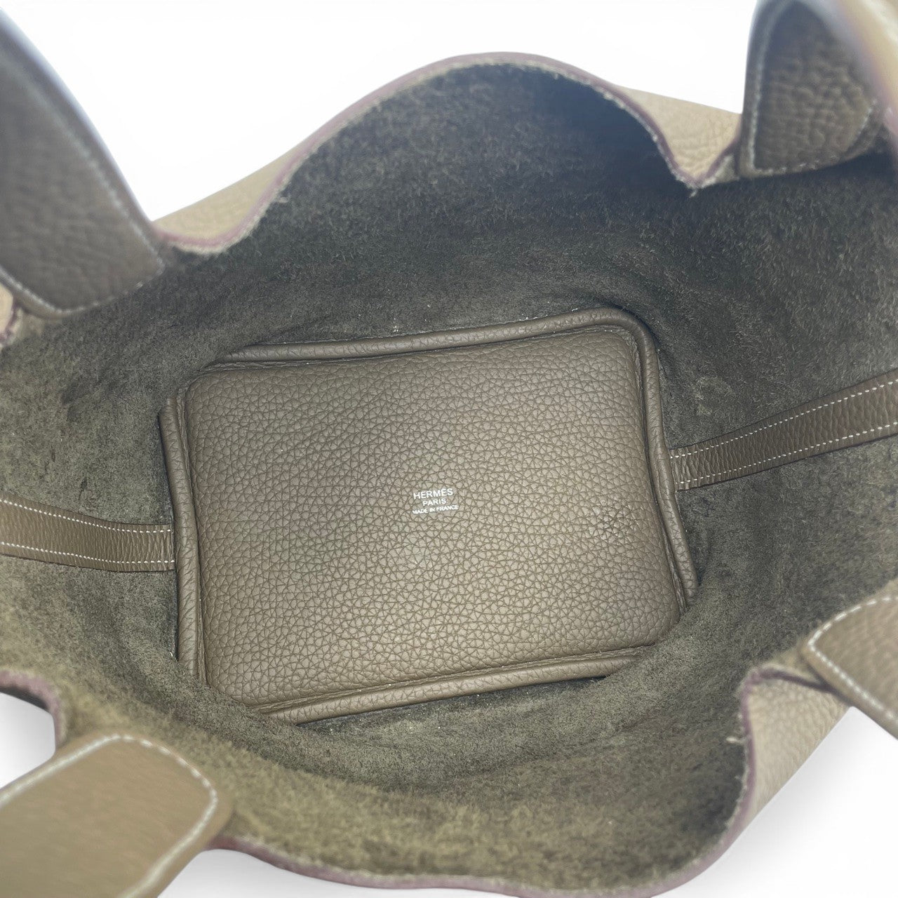 Pre-owned Hermes Picotan Lock PM Etoupe Taurillon Clemence Silver hardware Z engraved