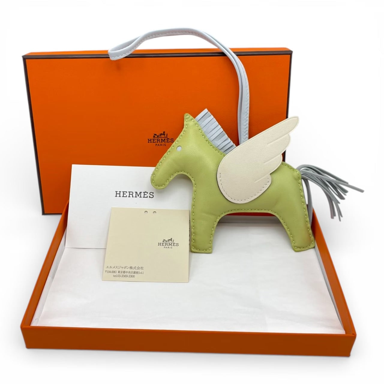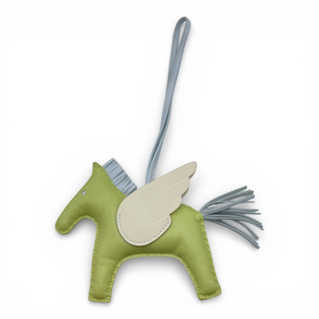 エルメス人気の「ペガサスチャーム」は、柔らかなスイフトレザーで仕立てられた遊び心あふれる一点。ジョーヌブルジョン、ナタ、ブループリュムの3色が絶妙に重なり合い、バッグにさりげない個性と立体感を添えてくれます。MMサイズは存在感がありつつも上品で、バーキンやケリーはもちろん、お手持ちのさまざまなバッグに合わせやすいバランスです。中古美品コンディションのため、デイリーに気兼ねなくお使いいただけるのも魅力です。