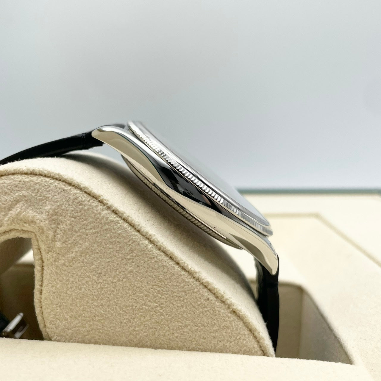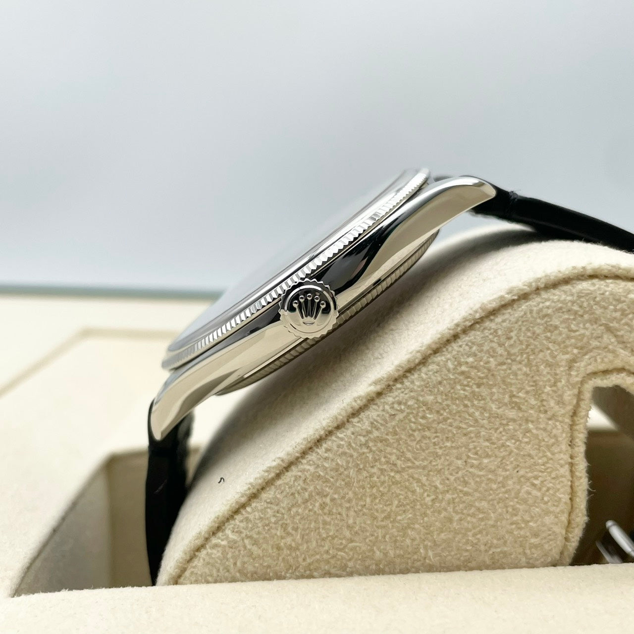 Pre-owned Rolex 1908 52506 Ice Blue Black Leather Belt 39mm