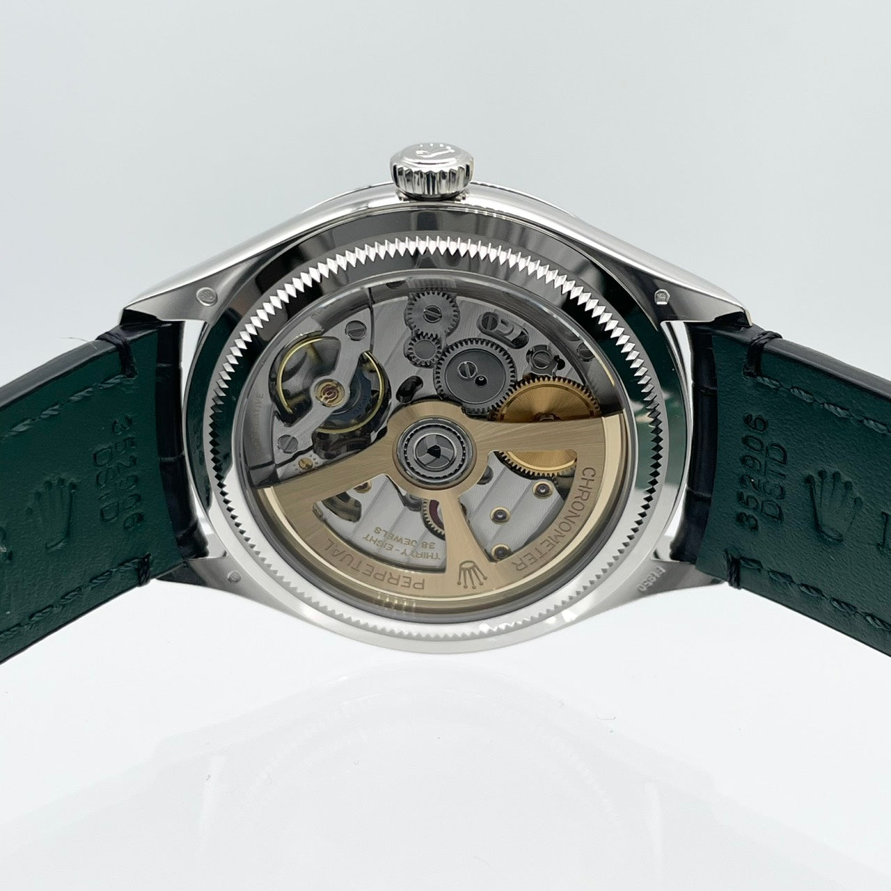 Rolex's captivating ice-blue 1908 is crafted from refined platinum and combines elegance with outstanding performance. The 39mm size adds a touch of style, and each individual design detail is a testament to exceptional craftsmanship. Rolex timepieces stand for timeless value and unparalleled reliability, and this special ice blue color makes them even more of a pleasure to own. This watch will enhance your lifestyle and add dignity.