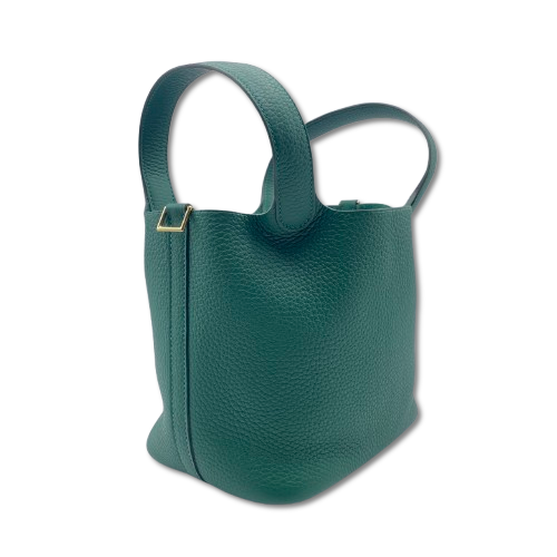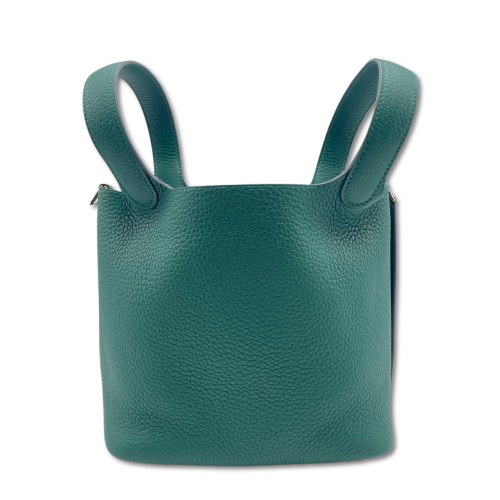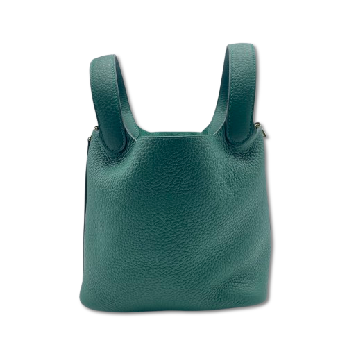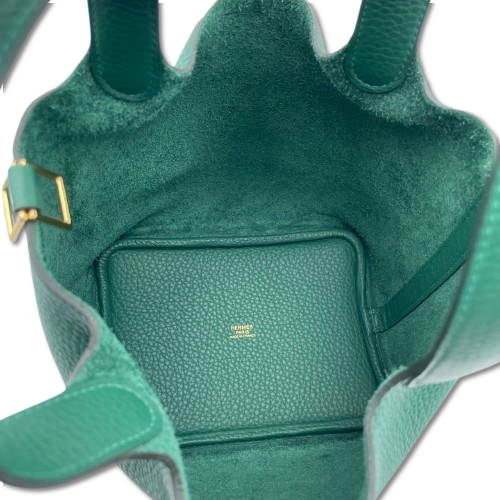Pre-owned Hermes Picotan Lock PM Vert Moyen Taurillon Clemence Gold hardware K stamp