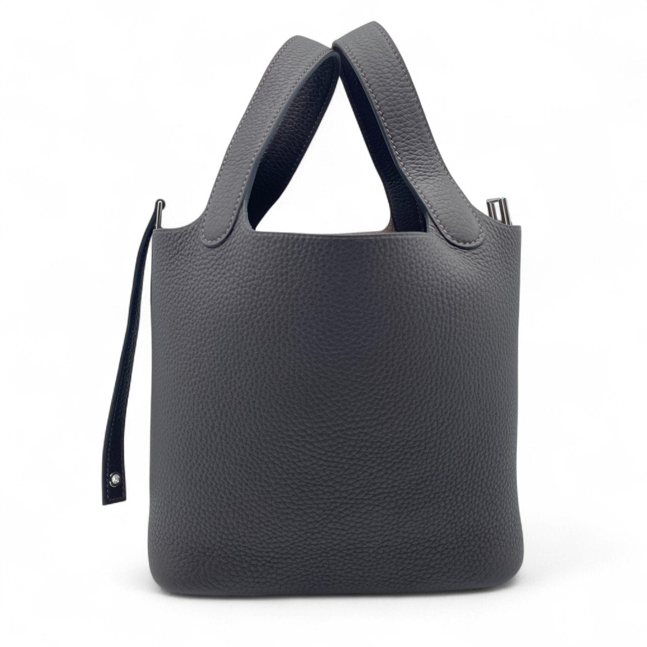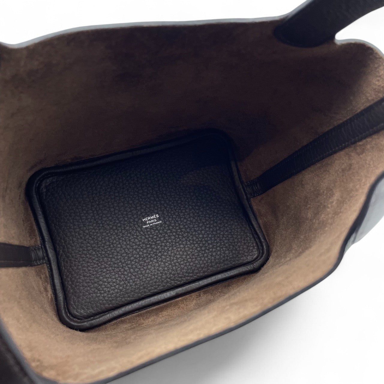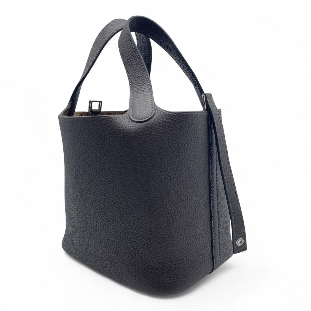 Hermes Picotan Lock features a simple yet elegant design. Made from high-quality Taurillon Clemence material, the rich Ebenne color adds a sense of luxury. The PM size is the perfect size for everyday use and is a versatile bag that goes well with any occasion. In particular, the gentle Ebenne color will add a touch of urban sophistication to your fashion. Would you like to add the sophistication and elegance unique to Hermes to your daily attire?