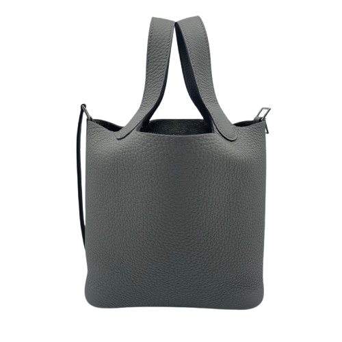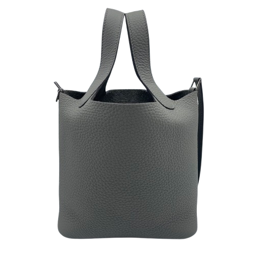 Hermes' Picotan Lock is a bag that is attractive for its simple yet elegant design. Crafted from Taurillon Clemence material, this model combines a soft touch with high durability. The color is calm yet gorgeous, and the size 18 is perfect for everyday wear. It is a masterpiece that matches any coordination and enhances the style of adult women.