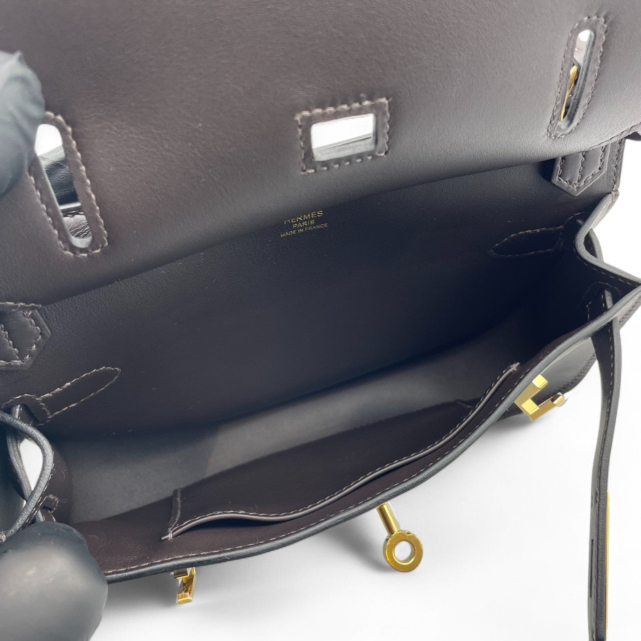 Pre-owned Hermes Gypsier Mini Ebennes Swift Gold hardware K stamp