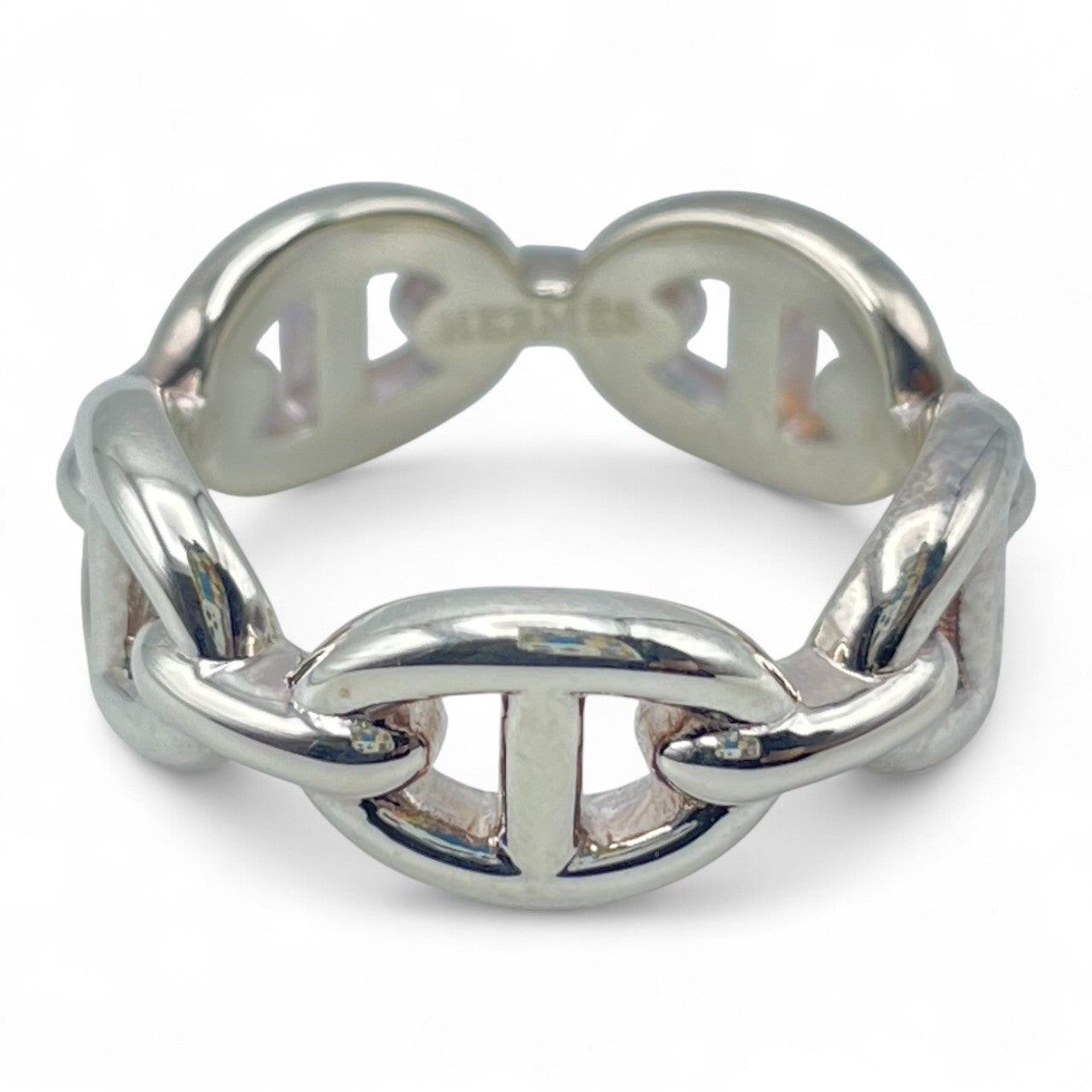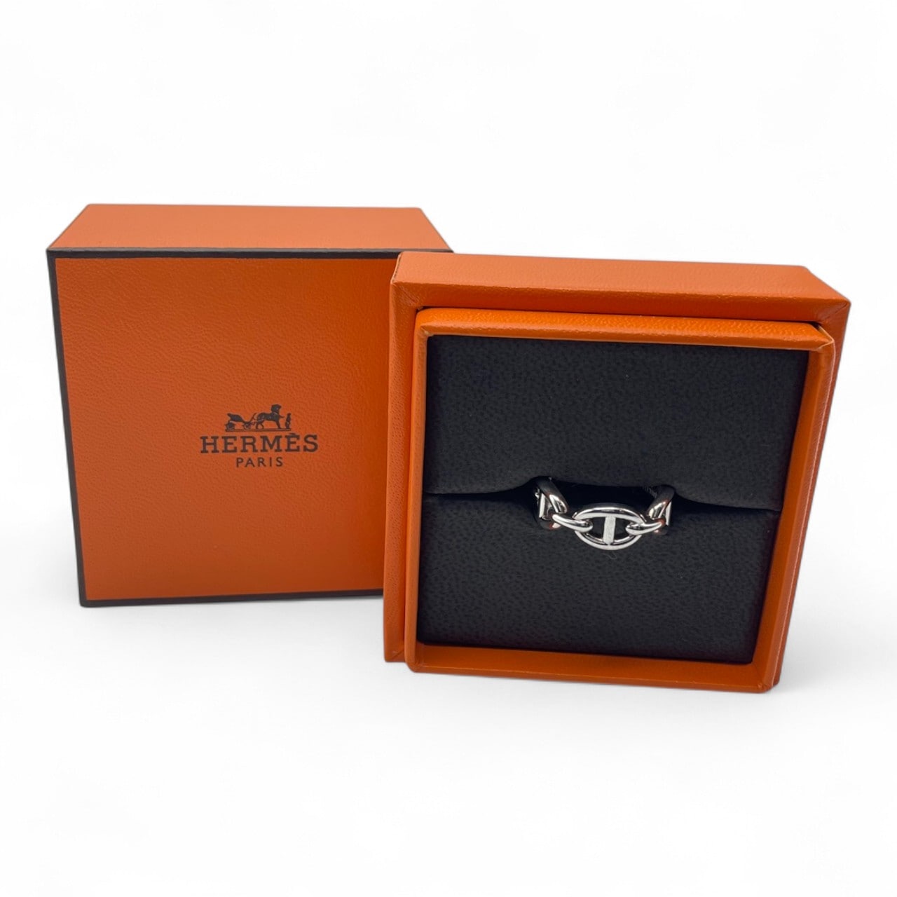 エルメスのシェーヌダンクル アンシェネリングは、洗練されたデザインとエレガンスが魅力の逸品です。このリングは、シンプルでありながらもその存在感を放ち、着用する人を引き立てます。シンプルなデザインでありながらも、エルメスらしい細部へのこだわりは、持つ人に特別な自信と洗練をもたらします。普段使いから特別なシーンまで、様々なコーディネートにマッチし、手元に輝きをプラスします。