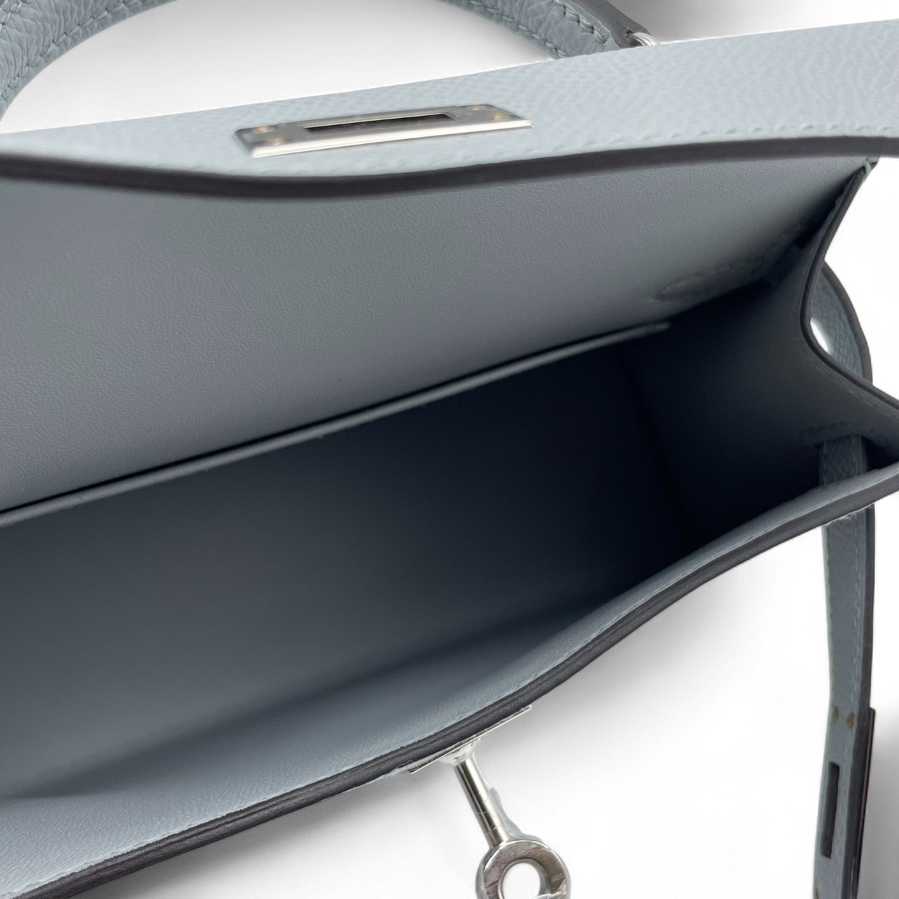 Pre-owned Hermes Mini Kelly 2 Blue Glacier Epson Silver hardware K stamp
