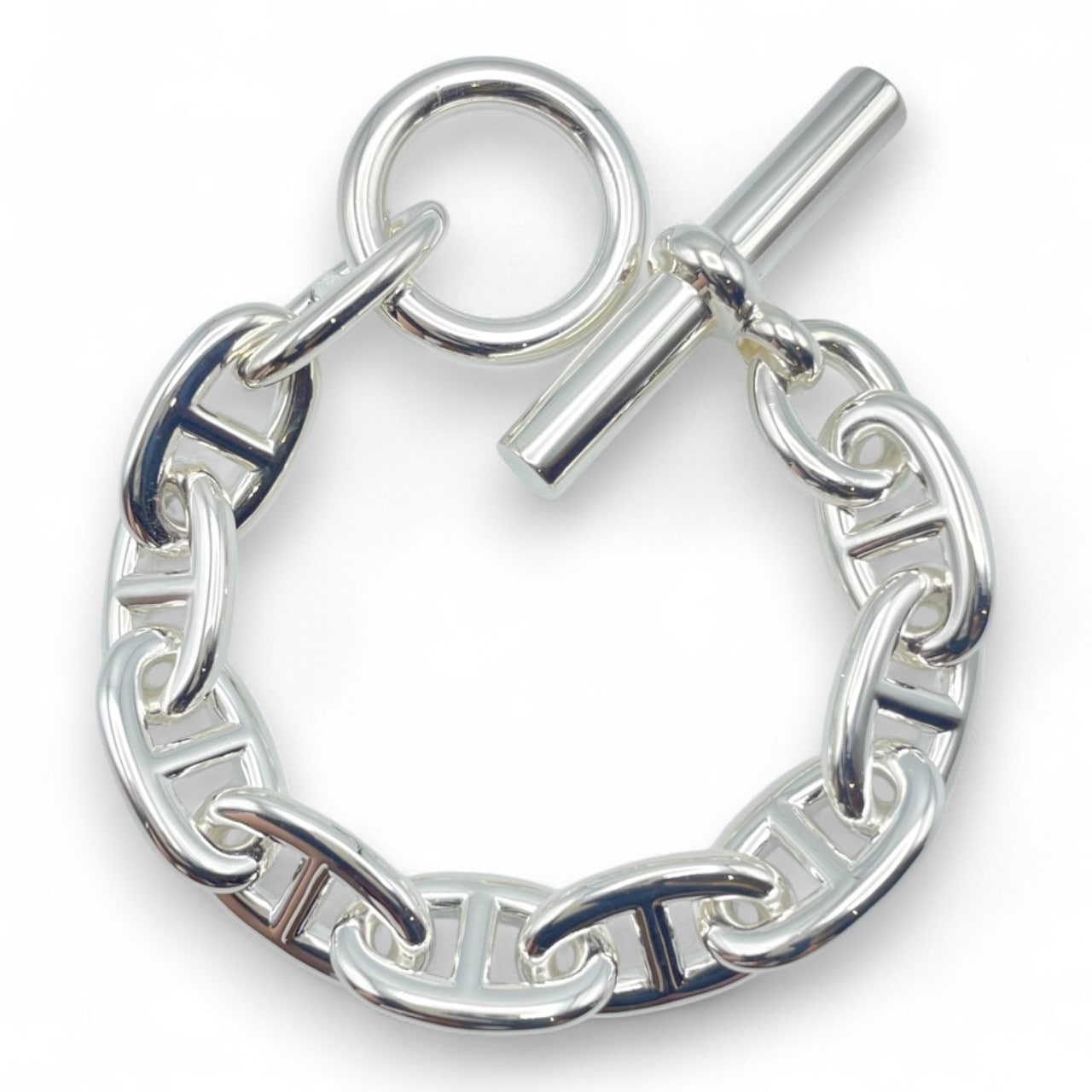 エルメスのシェーヌダンクル ブレスレットは、その独特なデザインと最高品質のシルバーで贅沢な輝きを放ちます。TGMサイズの10コマ仕様は、大胆かつエレガントな印象を与え、特別な日に、あるいは日常のスタイルにラグジュアリーをプラスします。エルメスならではの洗練された造形美は、どんなシーンにも溶け込み、気品を引き立てます。シンプルでありながら存在感のあるデザインが、あなたの手元を彩ります。