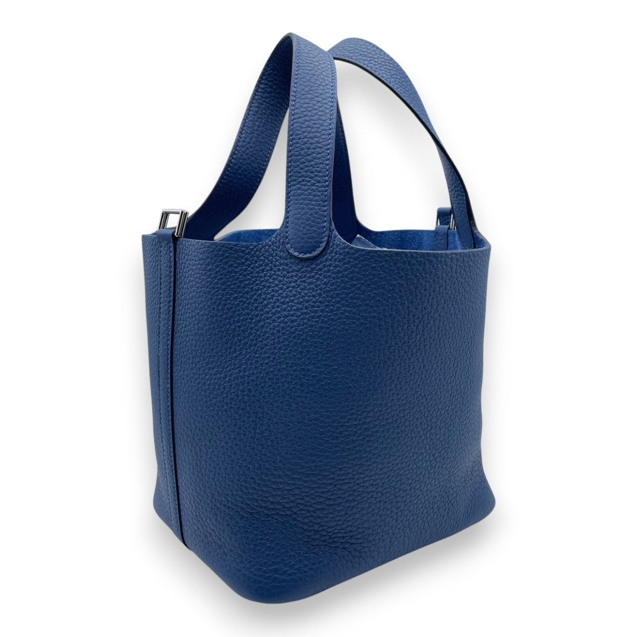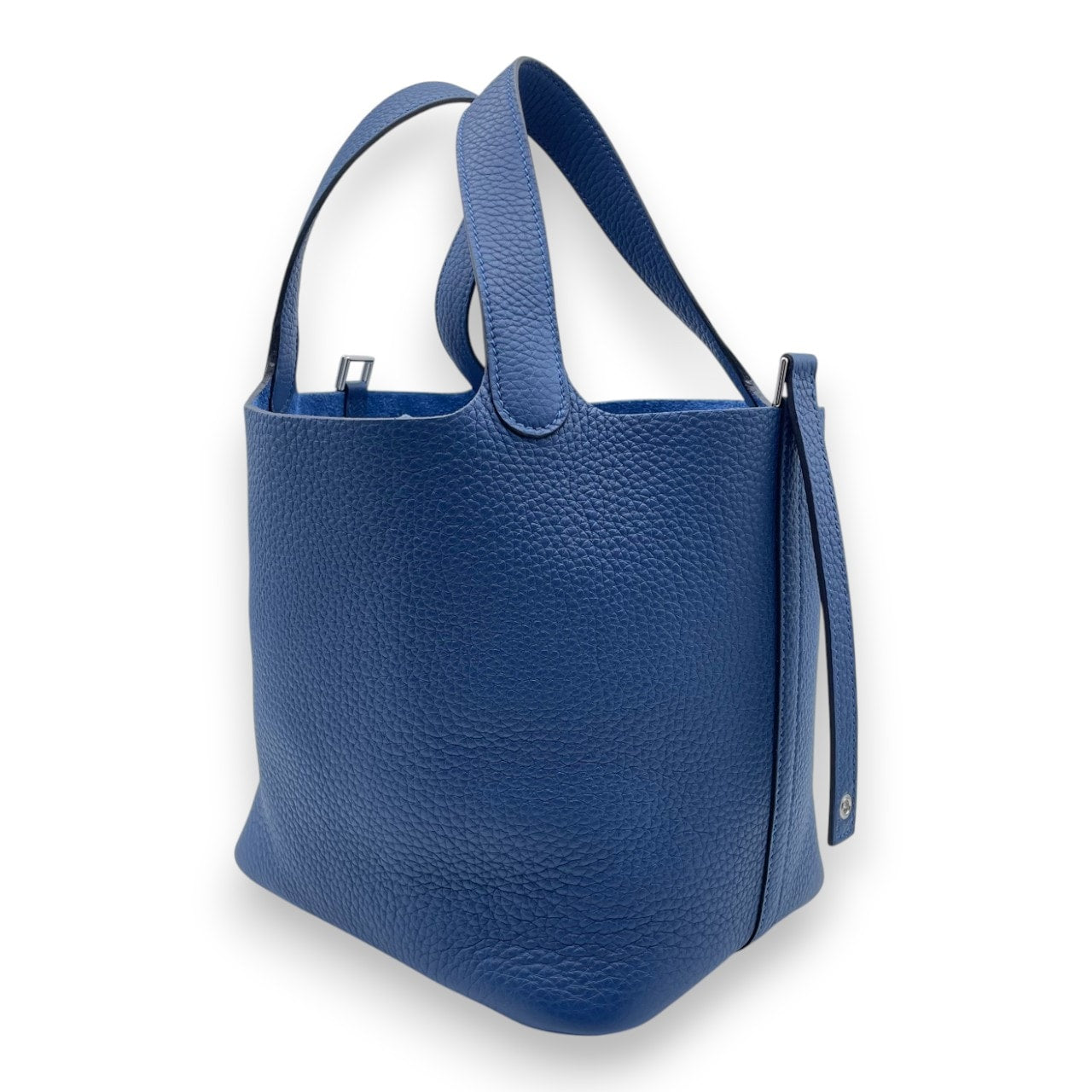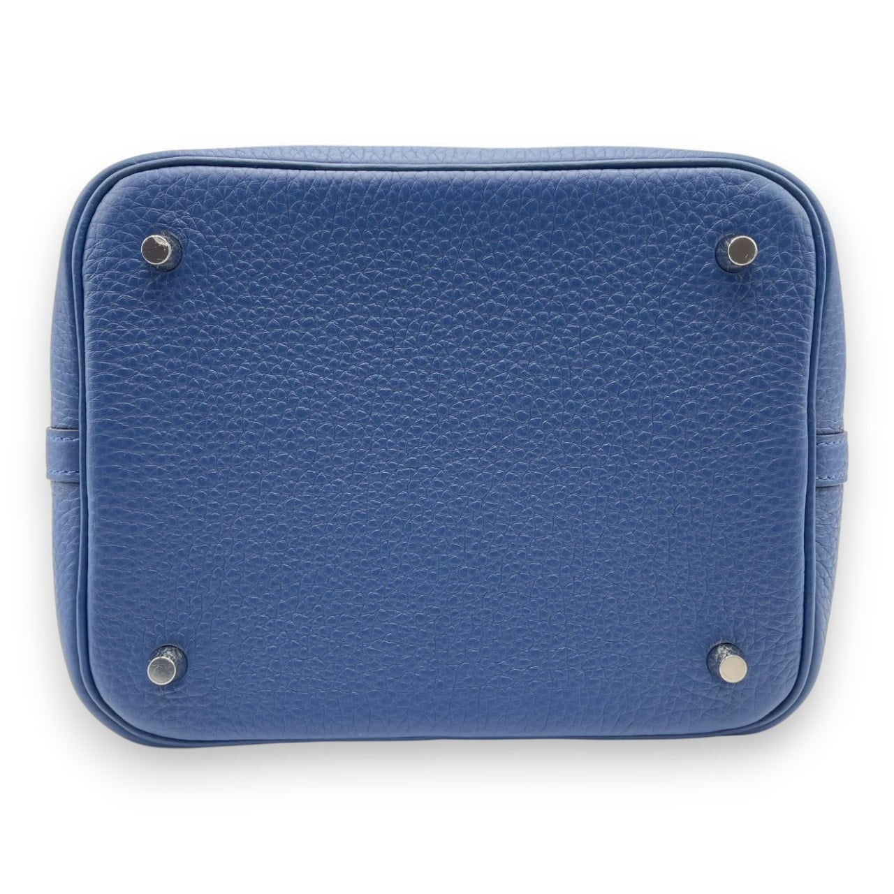 Pre-owned Hermes Picotan lock MM Blue tie Taurillon Clemence Silver hardware W engraved