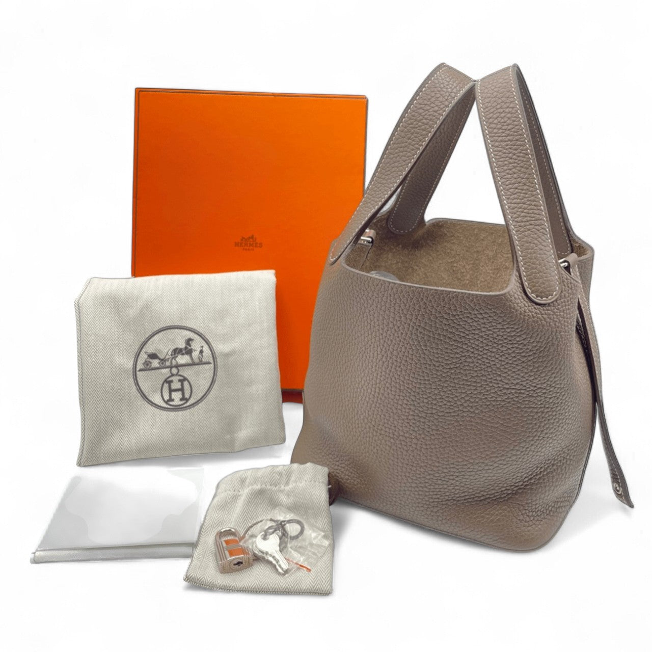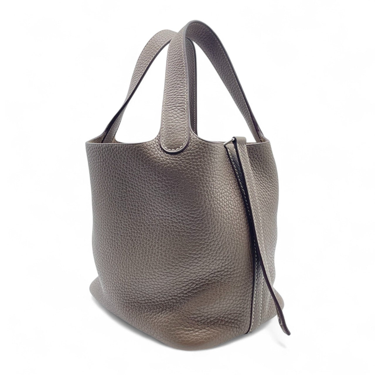 Pre-Owned Hermes Picotin Lock PM Etoupe Torillon Clemence Silver Fitting Y Engraved