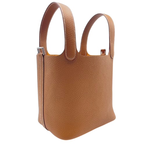 Hermes Picotin Lock is a bag loved by many people for its simple yet elegant design. Made from high-quality Torillon Clemence leather, it has a moist feel. The gold colour matches any style and serves as a great accent. The PM size is perfect for everyday use and you can easily carry the items you need. The lock placed in the center of the bag gives a sense of Hermes' craftsmanship.
