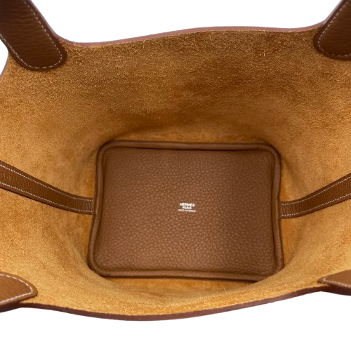 Pre-Owned Hermes Picotin Lock PM Gold Torillon Clemence Silver Metal Fitting K Engraved