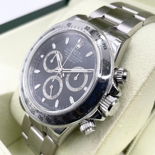 사전 소유의 롤렉스 데이토나 굴 팔찌 유동기 및 검은 색 다이얼 116505