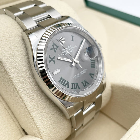 사전 소유의 롤렉스 데이트 주목 126234 슬레이트 로마 굴 팔찌 36mm