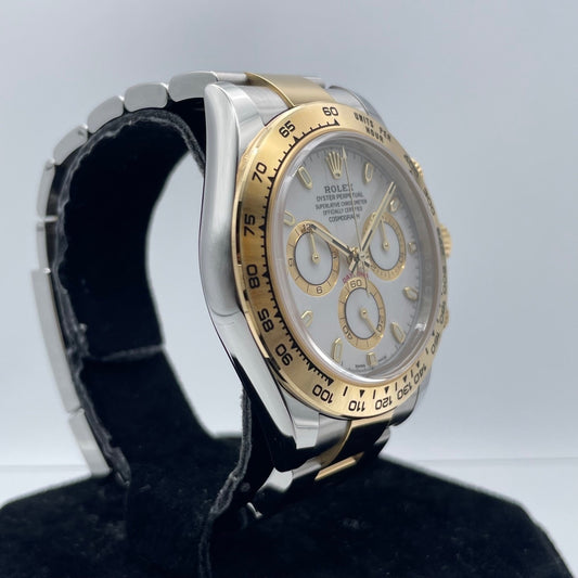 사전 소유 롤렉스 데이토나 116503 화이트 스테인레스 스틸 + 옐로우 골드 굴 팔찌 40mm