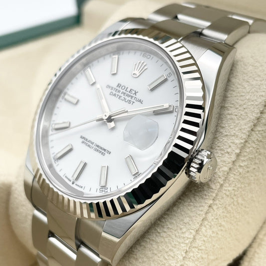 사전 소유의 롤렉스 날짜 주석 126334 화이트 굴 팔찌 41mm