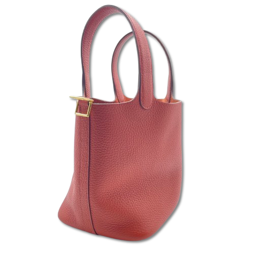 사전 소유 헤르메스 피코 틴 잠금 PM Rouge Casack Torillon Clemence Gold Hardware B 조각.