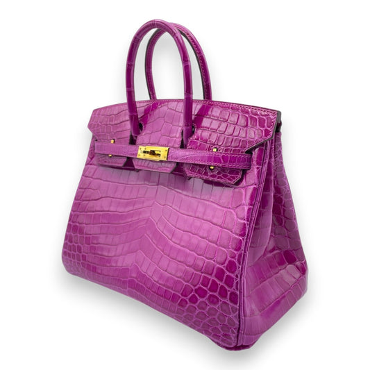 プレオウンドエルメス バーキン 25 ローズシェヘラザード クロコダイルニロティカス ゴールド金具 □P刻印