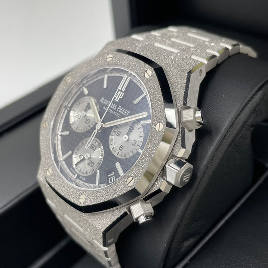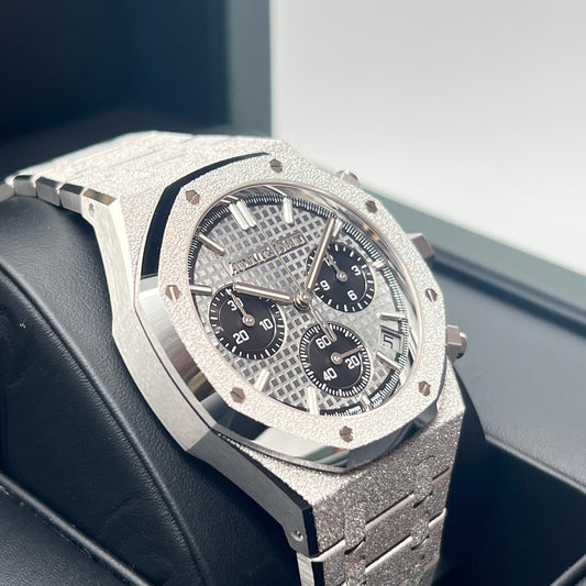 사전 소유의 오디오 돼지 돼지 로얄 오크 26240BC.GG.1324BC.01 실버 크로노 그래프 프로스트 골드 41mm
