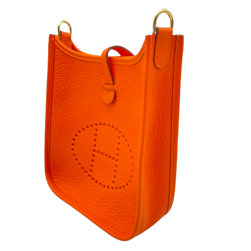 사전 소유 헤르메스 미니 에블린 TPM 오렌지 포피 토릴론 클레멘스 골드 하드웨어 B 새겨진