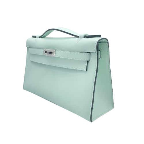 중고 에르메스 포쉐트 켈리 22 페퍼민트 스위프트 실버 하드웨어 K 스탬프