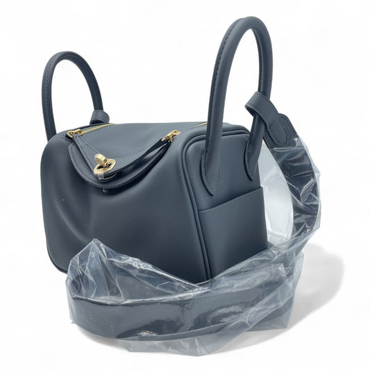 중고 에르메스 린디 미니 20 그리미스티/느와르 스위프트 샴페인 골드 하드웨어 K 스탬프