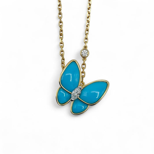 プレオウンドヴァンクリーフ&アーペル ドゥ パピヨン ネックレス VCARP7UP00 ターコイズ イエローゴールド