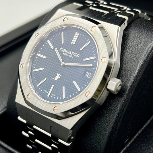사전 소유의 오디오 돼지 돼지 로얄 오크 "점보"여분의 sin 15202st.oo.1240st.01 Blue 39mm