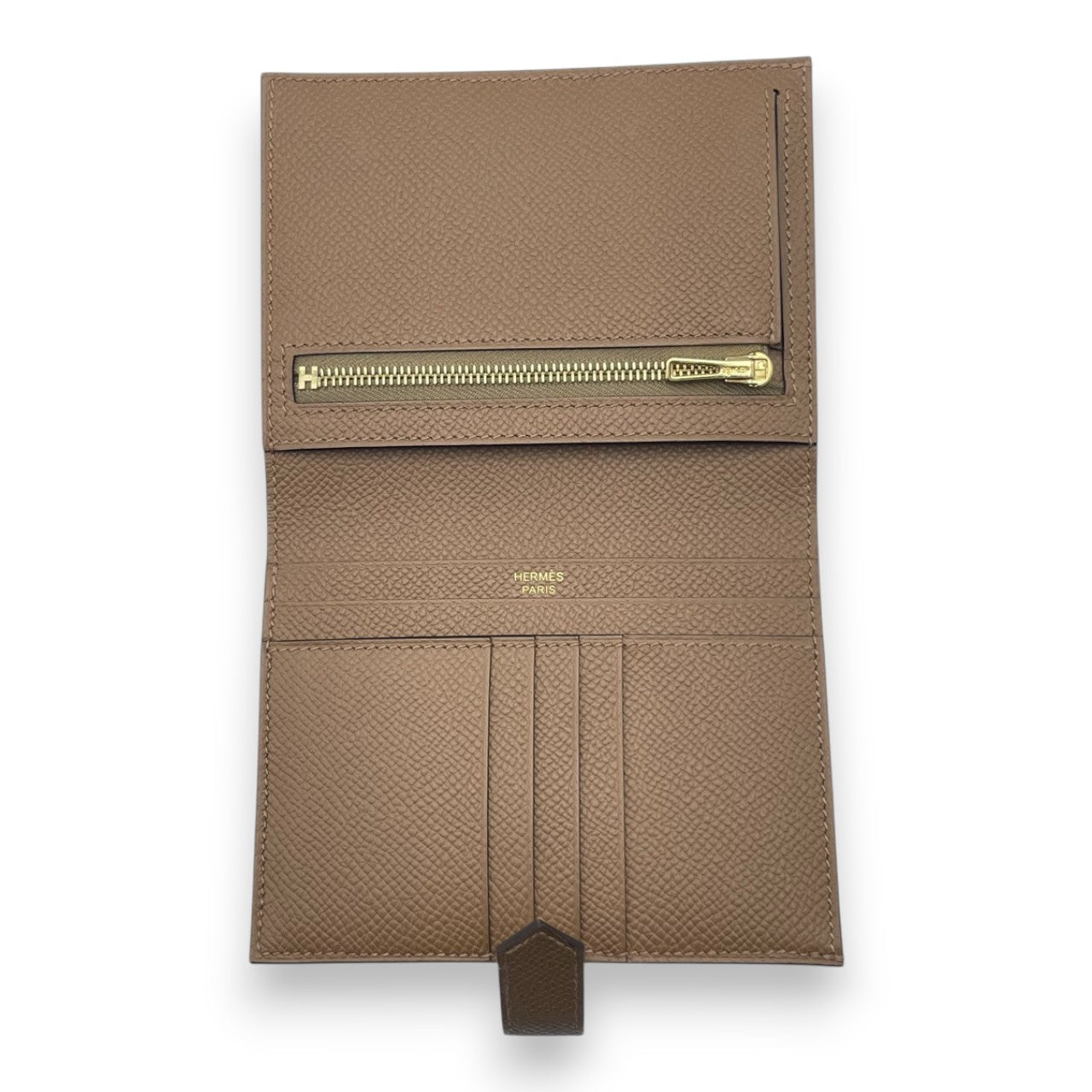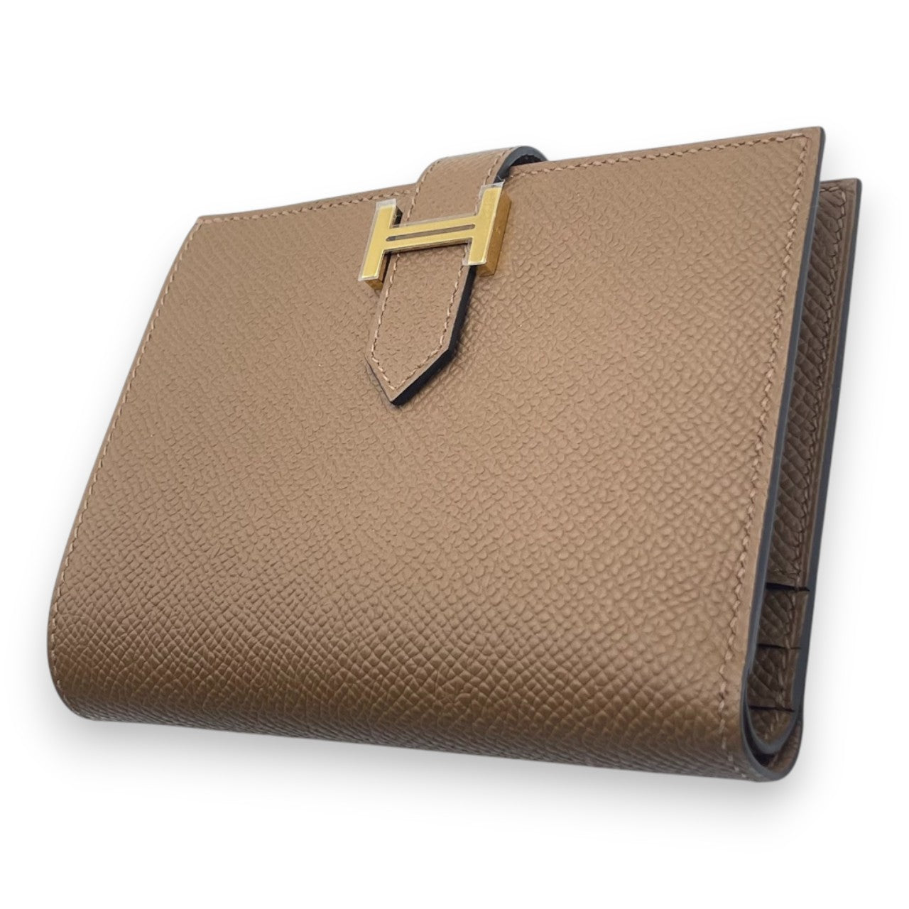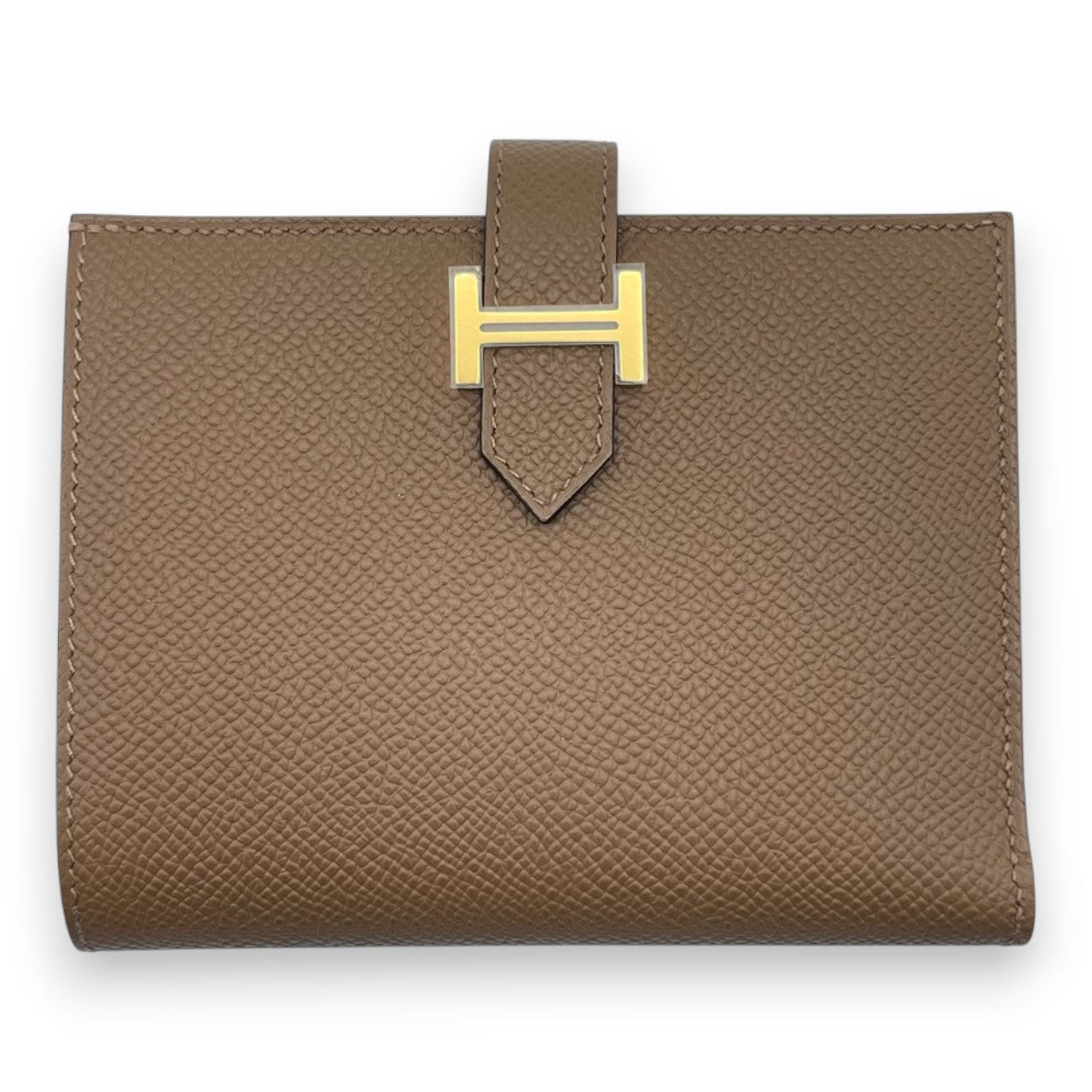 エルメスの定番財布「べアンコンパクト」は、その名の通り手のひらにすっきりと収まるコンパクトさと、高い収納力を兼ね備えた人気モデルです。上質なエプソン素材は傷が付きにくく、美しい型押しが長く続くのが魅力。上品なブラウン系カラーの「アルザン」は、どんなバッグや装いにも自然に溶け込みながら、さりげないエルメスらしさを演出します。キャッシュレス派にも使いやすいスマートなサイズ感で、日常使いからフォーマルシーンまで幅広くお楽しみいただける逸品です。