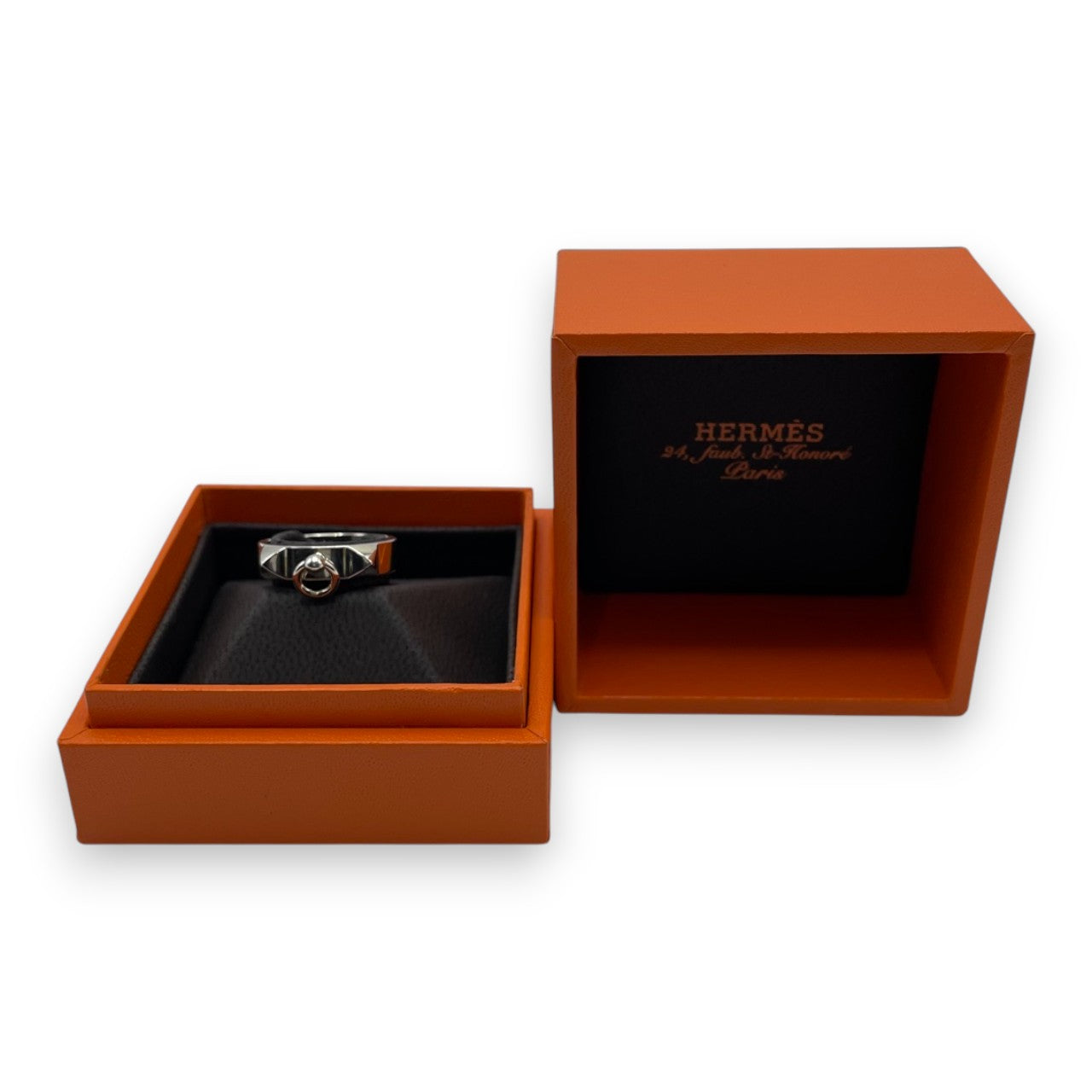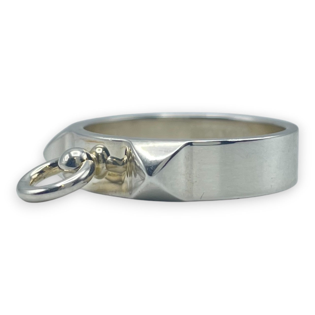 エルメスを代表するアイコニックジュエリー「コリエ・ド・シアン」。存在感のあるスタッズとリングがあしらわれた大胆なデザインは、身に着けるだけでコーディネートにモードなエッセンスを添えてくれます。シルバーの冴えた輝きが、手元の動きに合わせて上品に反射し、ドレスアップはもちろん、シンプルなスタイルの格上げにも最適です。コンディションも良好で、永くご愛用いただけるお品物です。