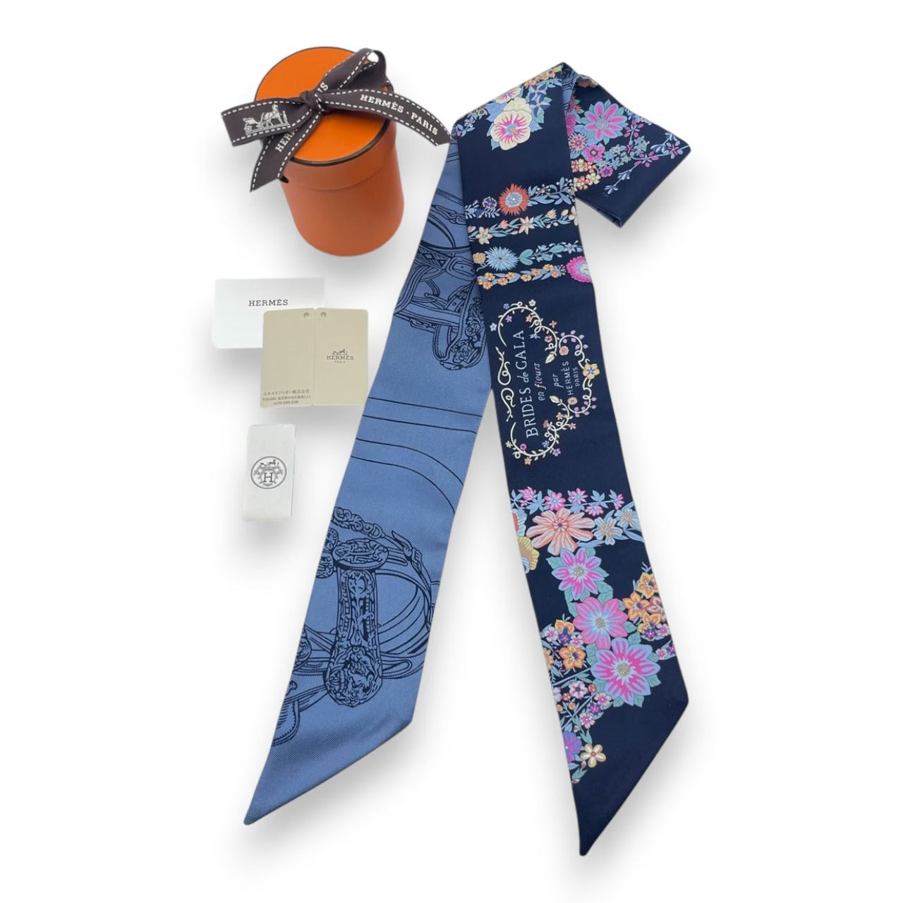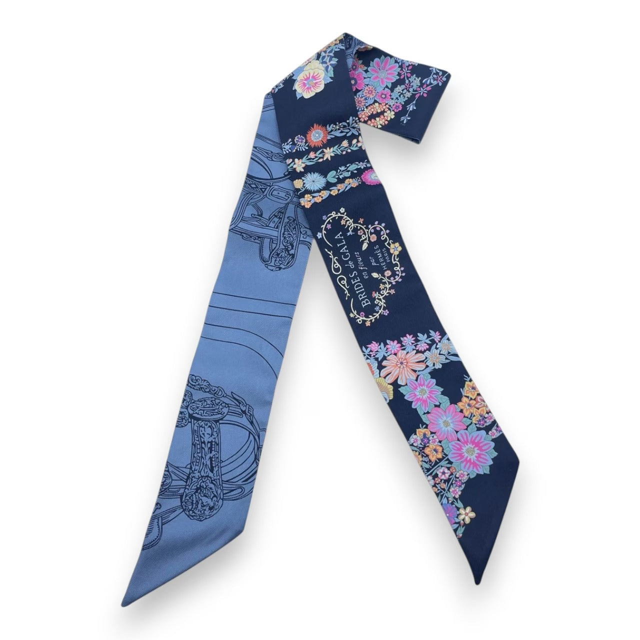 プレオウンドエルメス ツイリー ブリッド・ドゥ・ガラ・アン・フルール&アイライナー マリン/ピンク/ブルージーン シルク100%