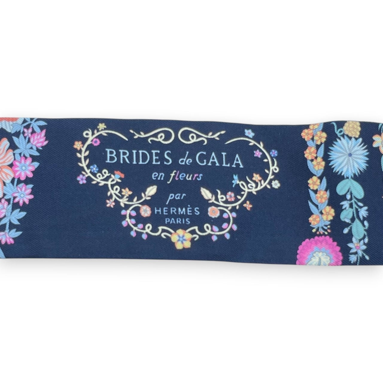 プレオウンドエルメス ツイリー ブリッド・ドゥ・ガラ・アン・フルール&アイライナー マリン/ピンク/ブルージーン シルク100%