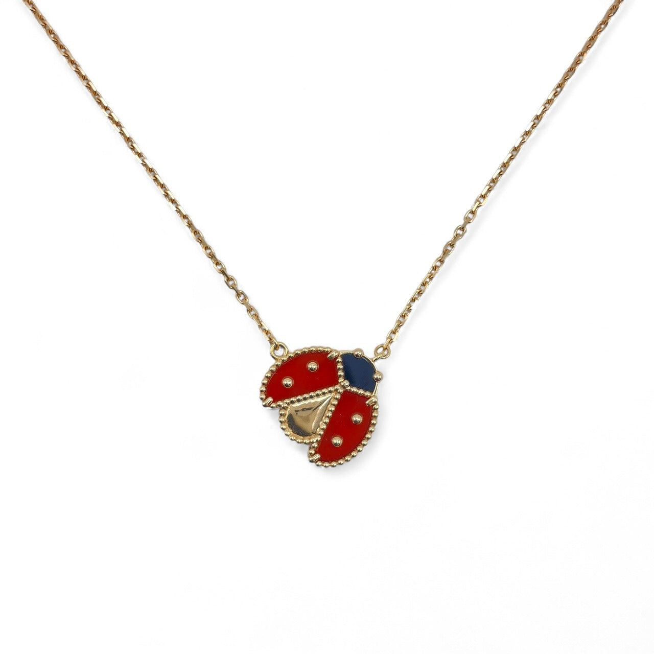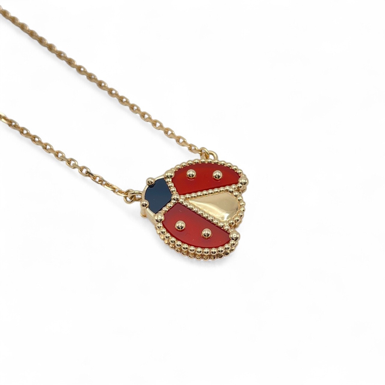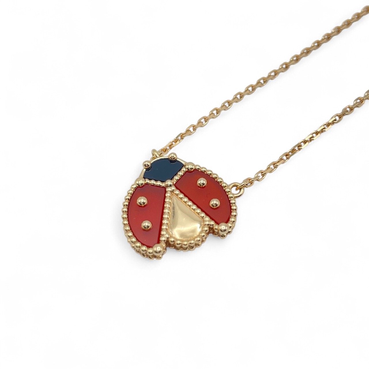 プレオウンドヴァンクリーフ&アーペル ラッキー スプリング ペンダント オープンウィング レディバグ VCARP9X000 オニキス/カーネリアン ローズゴールド