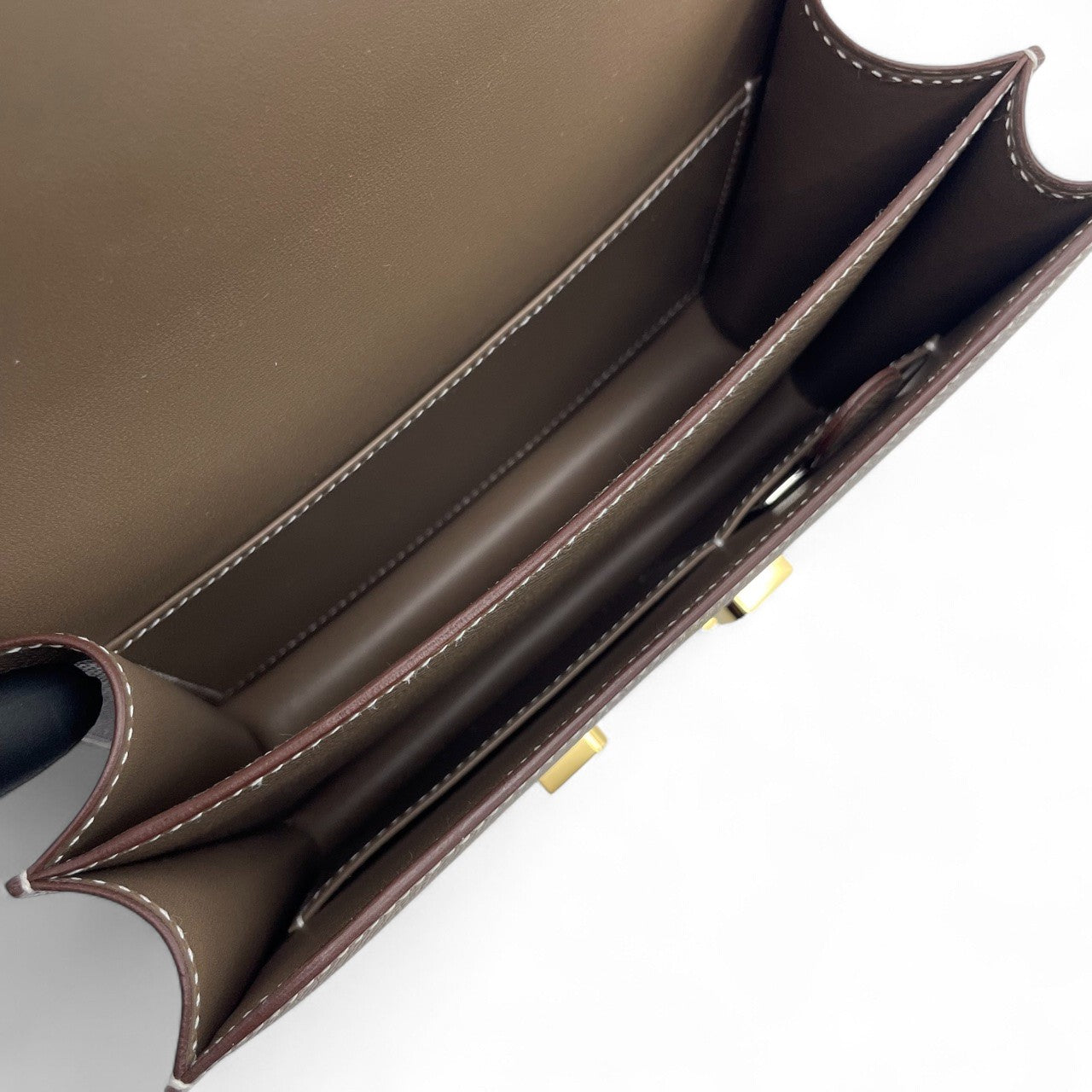 에르메스 콘스탄스 미니는 세련된 디자인과 우아한 스타일이 결합된 우아한 가방입니다. 엡손 가죽으로 제작된 에투프 칼라는 은은한 고급스러움을 연출하며 심플하면서도 펀치감 있는 룩을 완성해줍니다. 이 18사이즈 백은 일상 사용과 특별한 행사 모두에 적합하며 여성스러움을 강조합니다. 들고 있는 것만으로도 고급스러운 분위기를 연출해주는 아이템입니다.